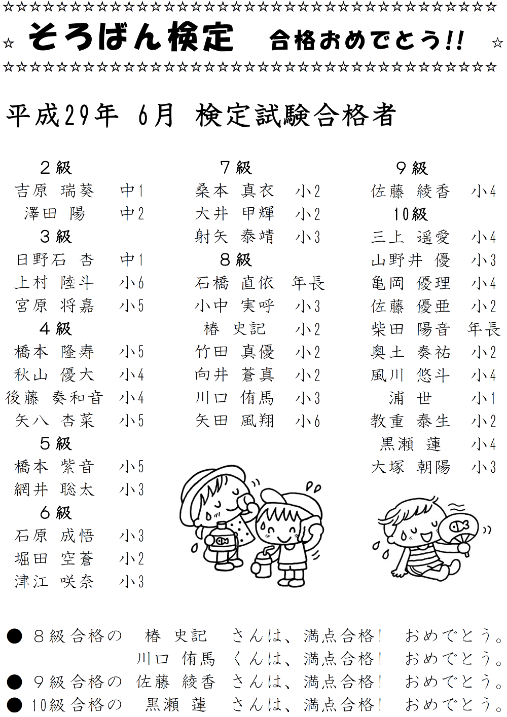 そろばん検定 合格者