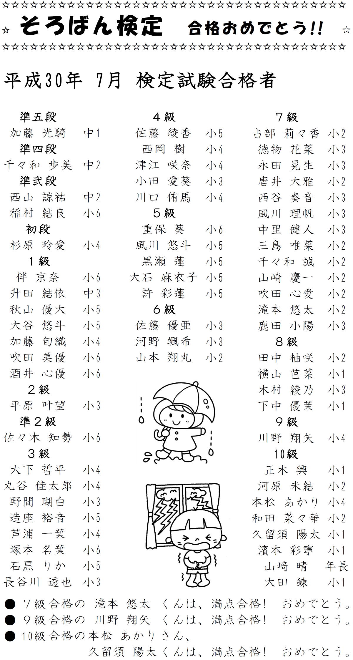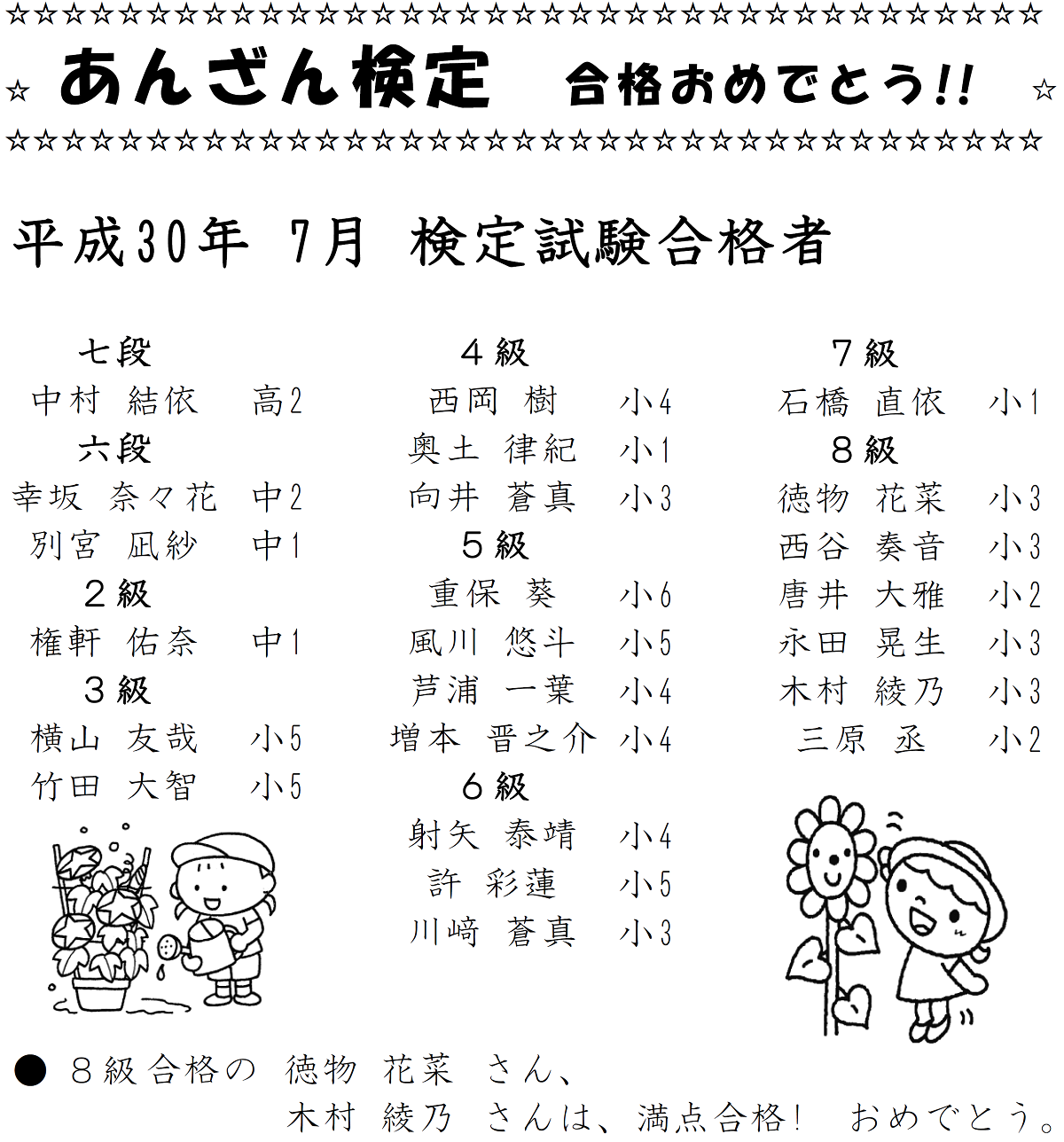 平成30年7月:検定試験合格者