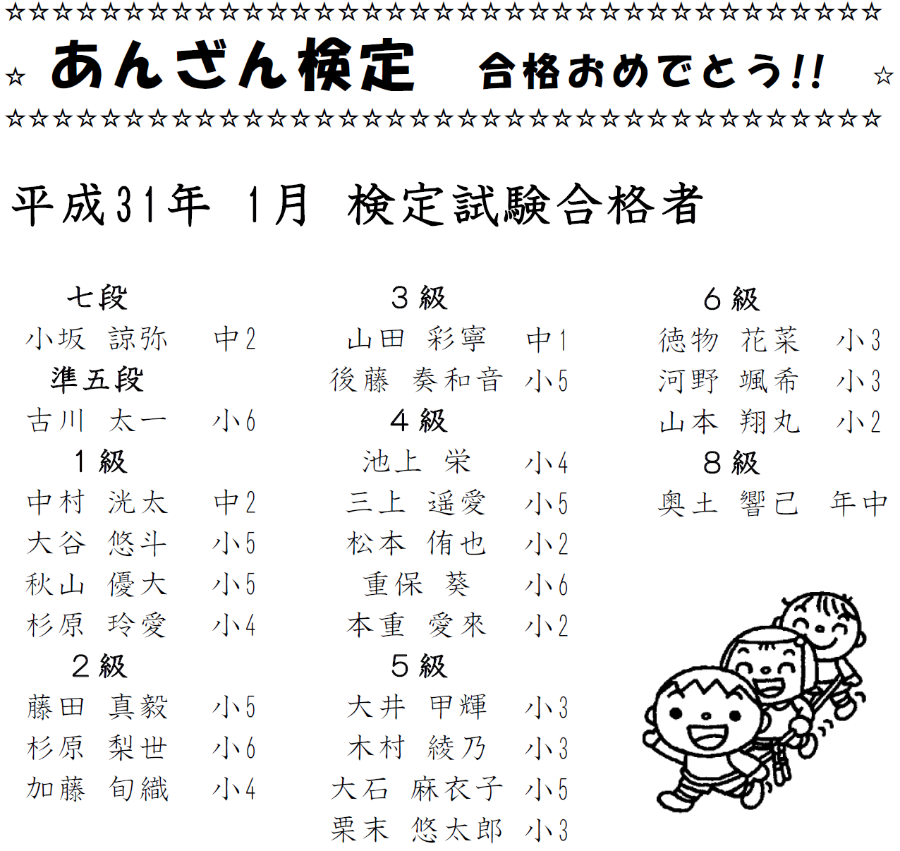 あんざん検定 合格者
