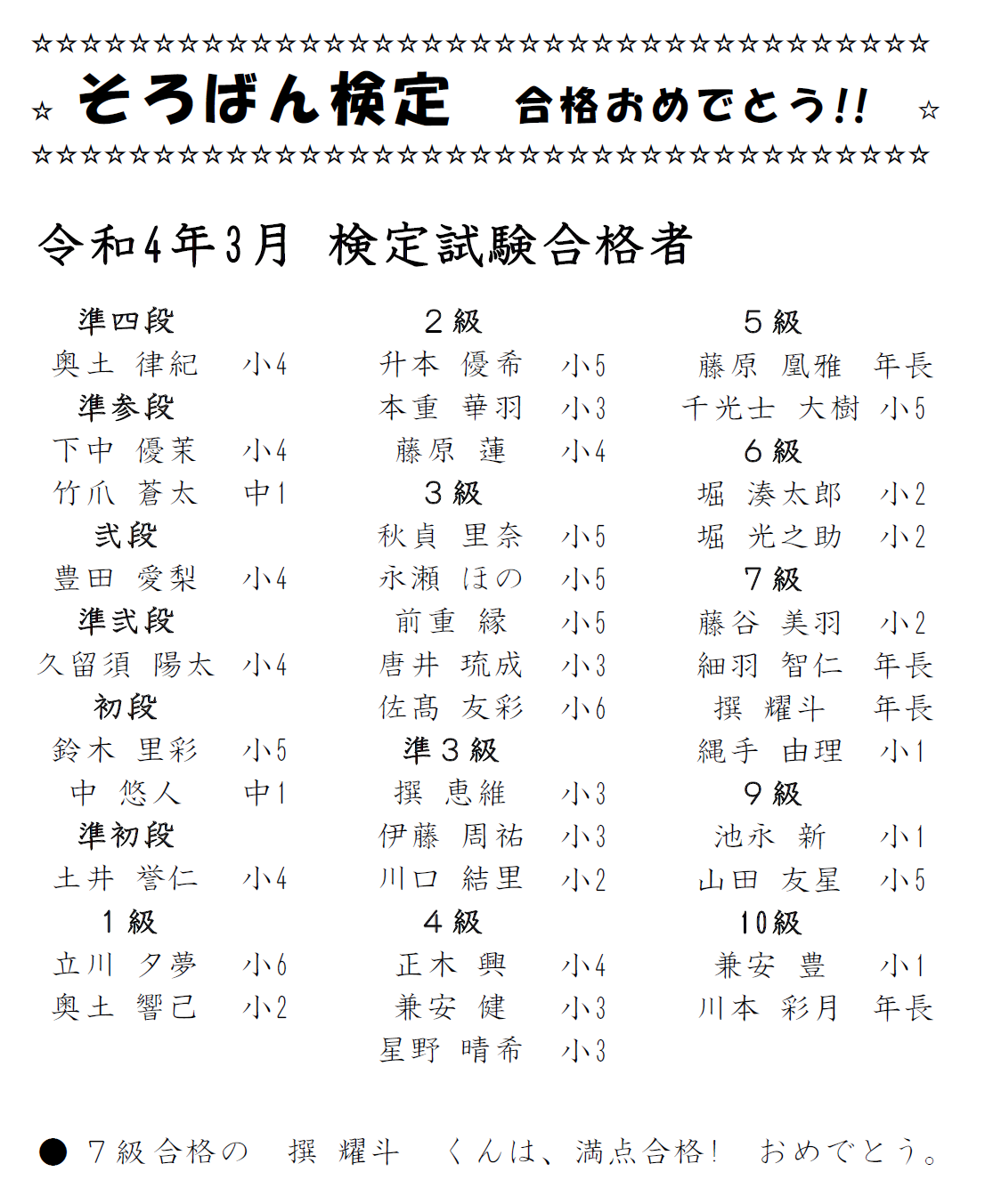 そろばん検定 合格者