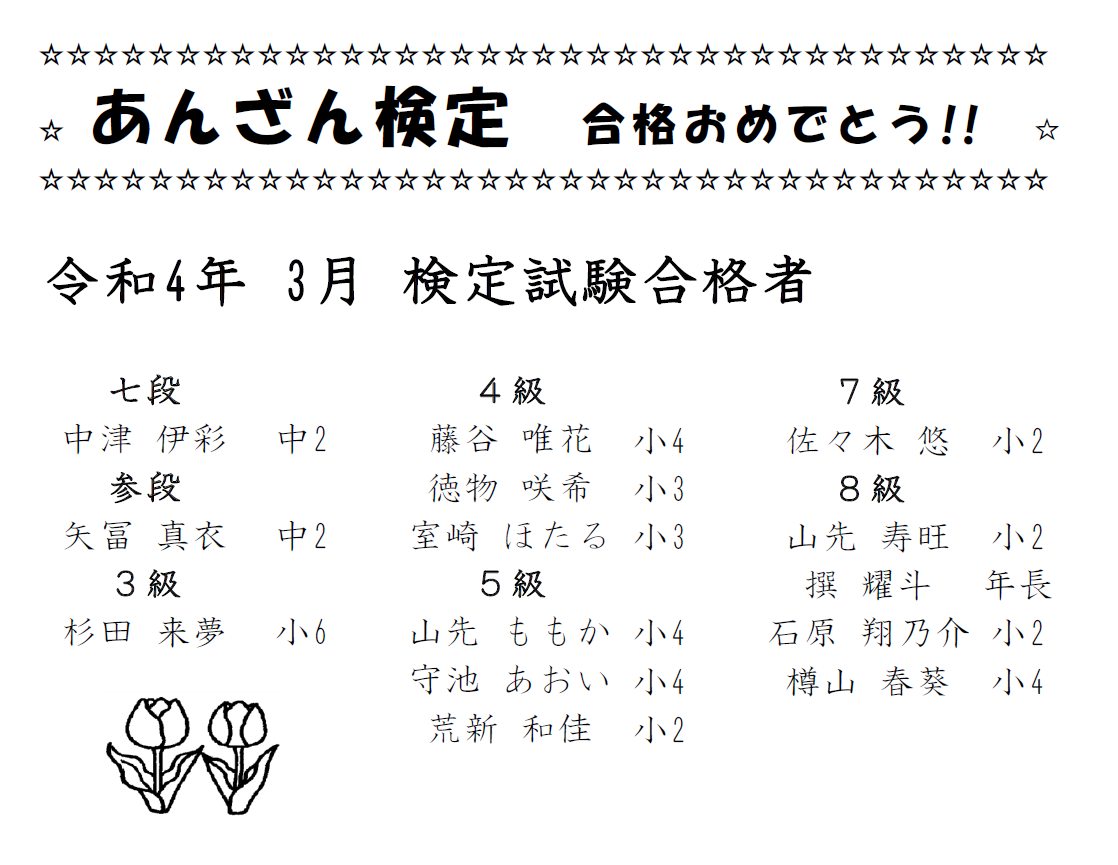 あんざん検定 合格者