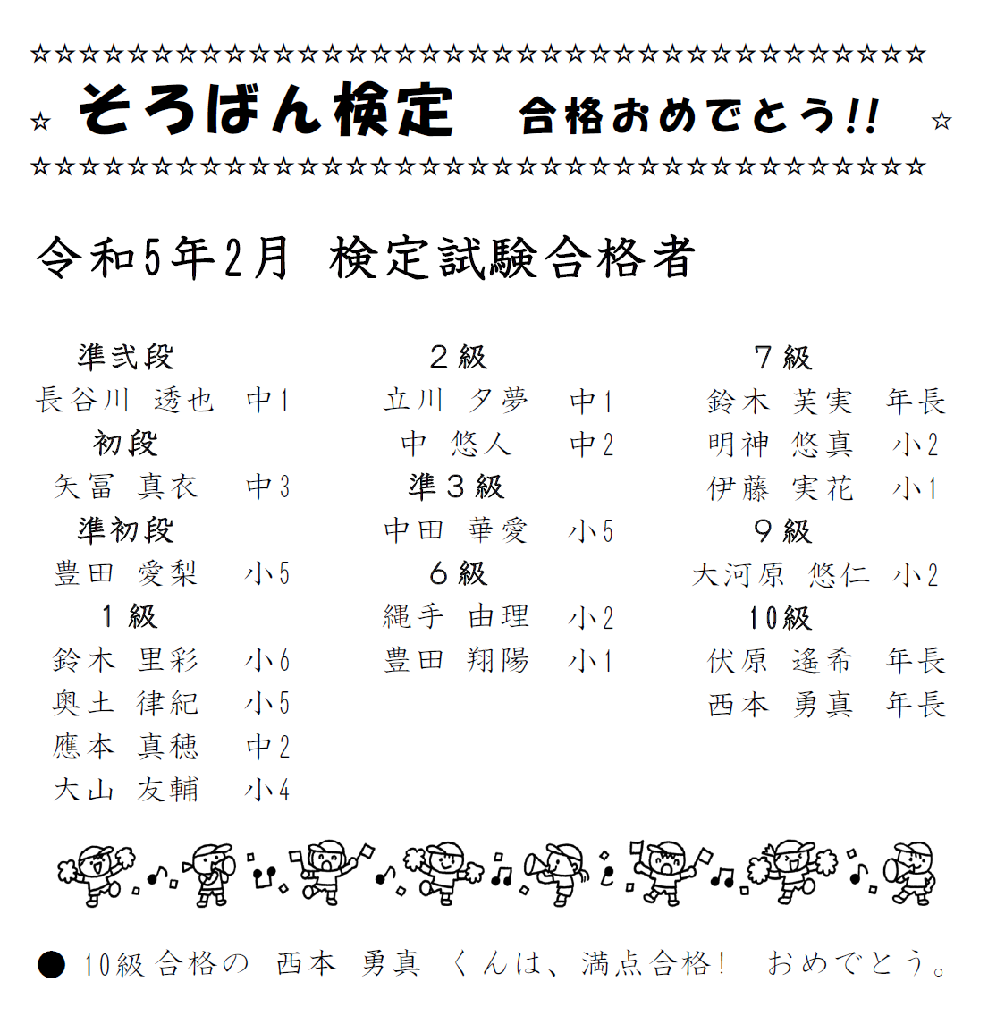 そろばん検定 合格者