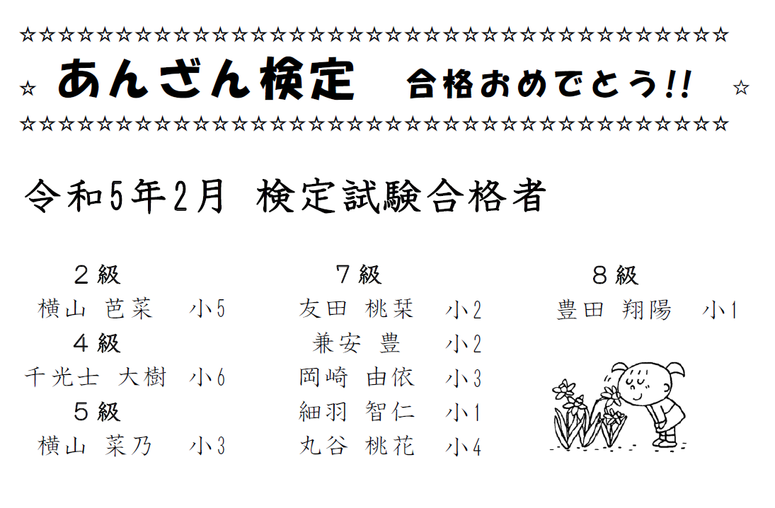 あんざん検定 合格者