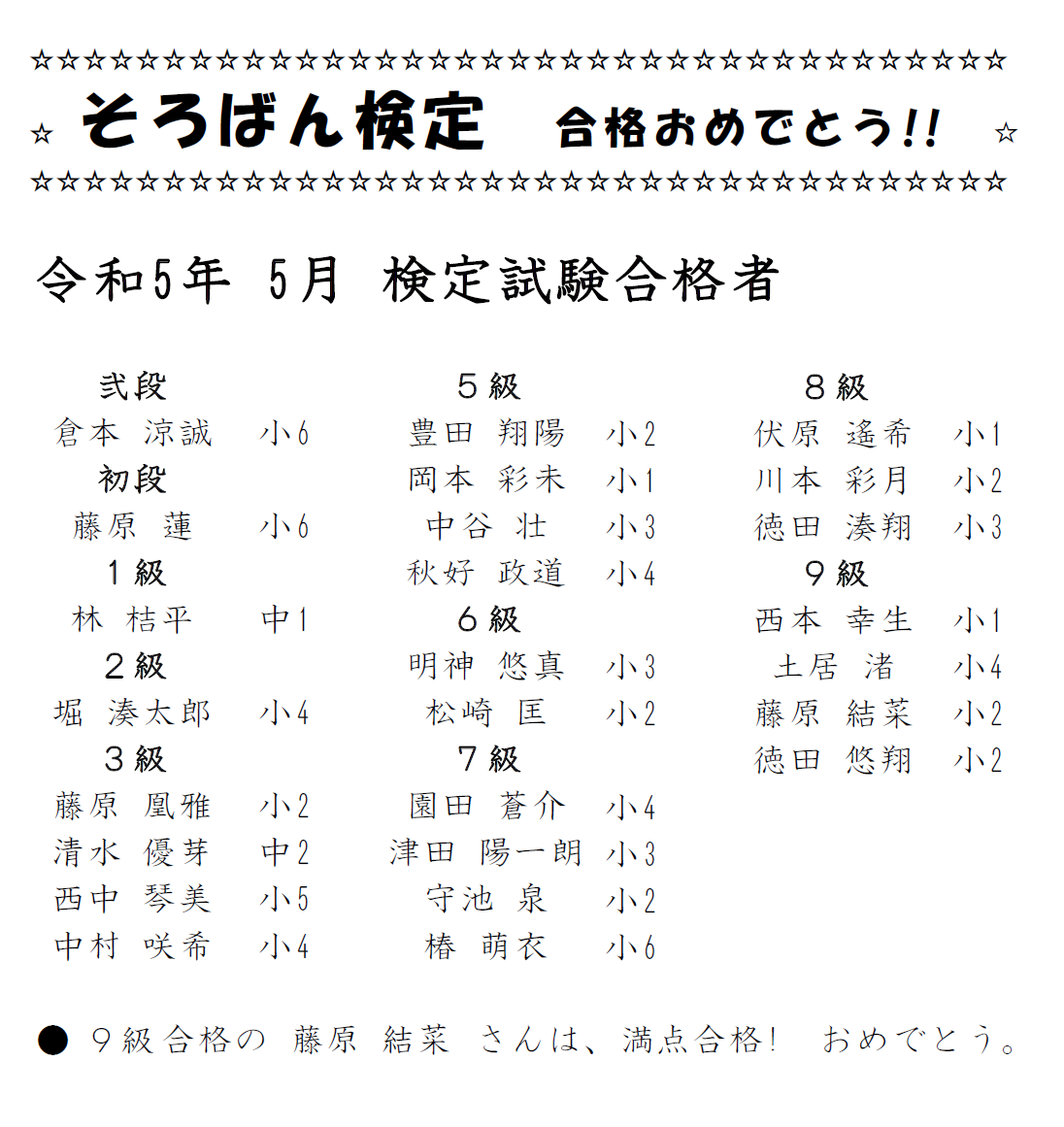 そろばん検定 合格者