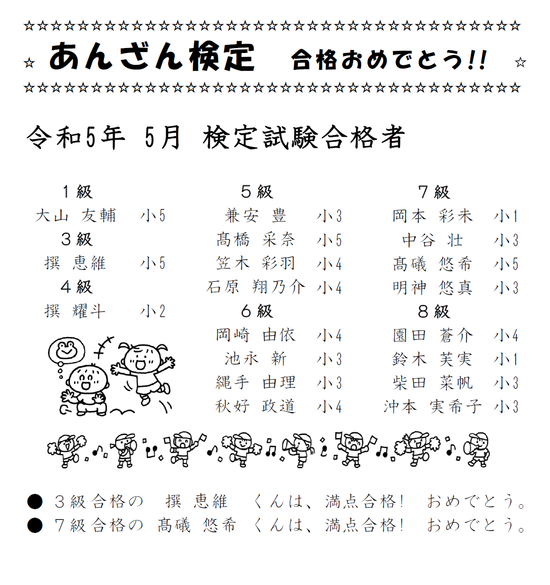 あんざん検定 合格者