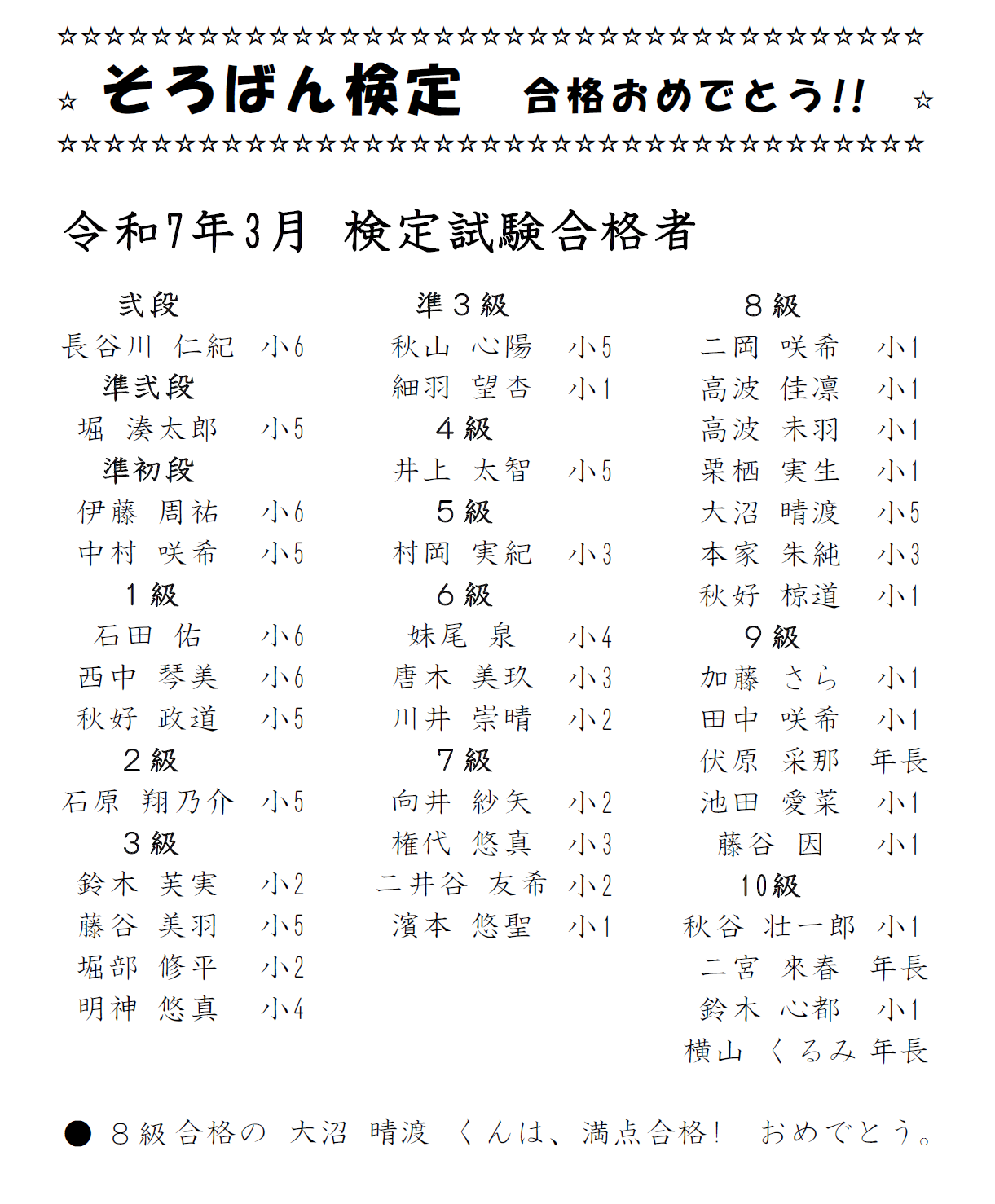 そろばん検定 合格者