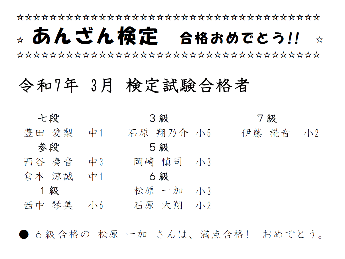 あんざん検定 合格者